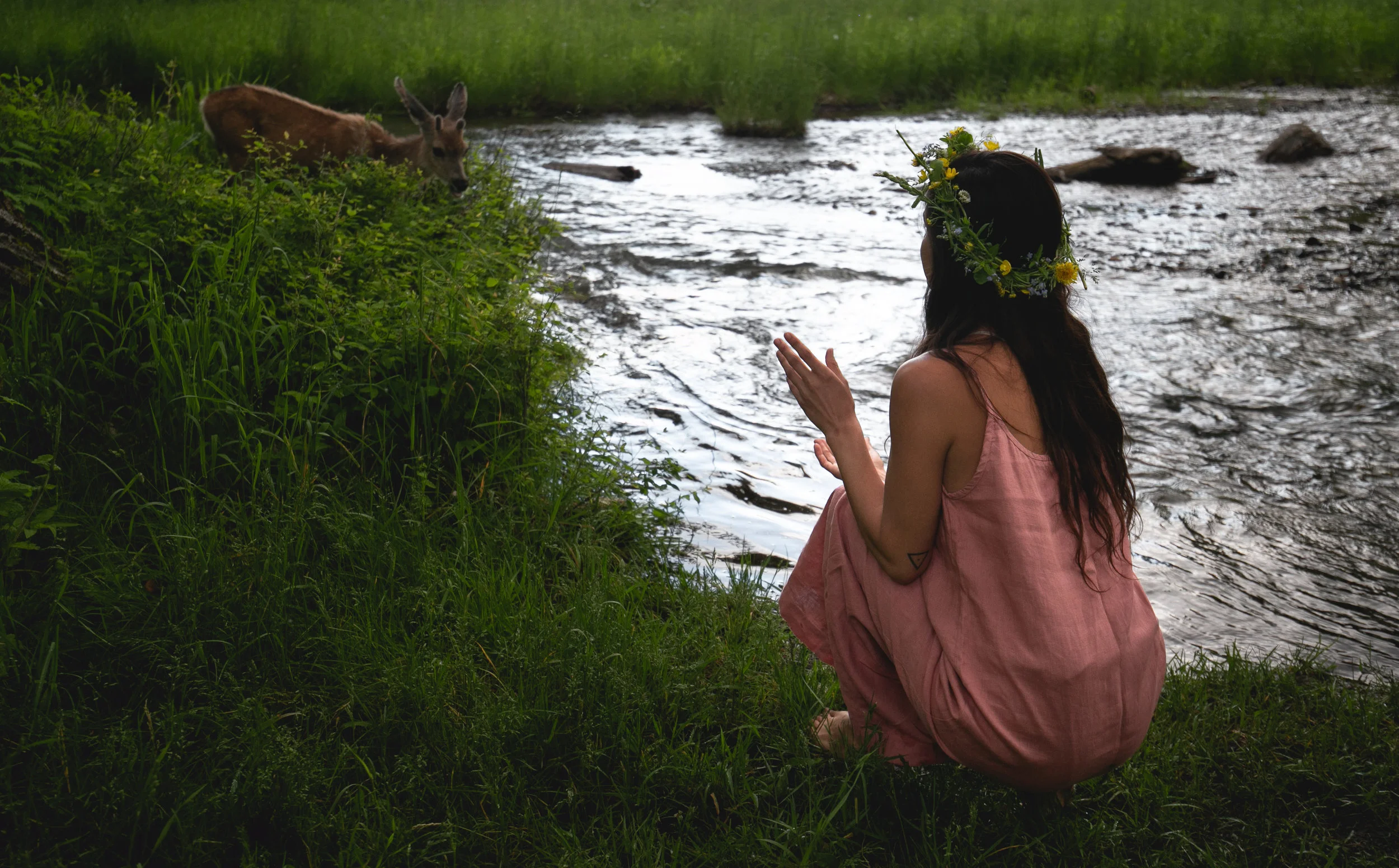 P.S. ~ In the midst of this Goddess Portrait Session, a beautiful young fawn graced us with its presence. River crept close on hands and knees, and we watched, breathless and in-awe beside the berry thicket.